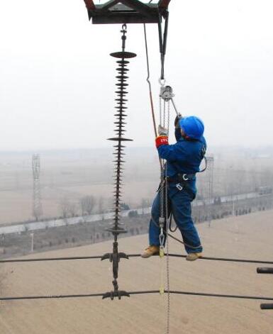 電力設(shè)施檢修電力工人攜帶鋁合金手扳葫蘆檢修作業(yè)...